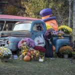 Look at this beautiful Halloween yard display featuring decorations that are both old and new making the perfect blend of cute and creepy. Such a beautiful design coming straight out of Little Switzerland, North Carolina.